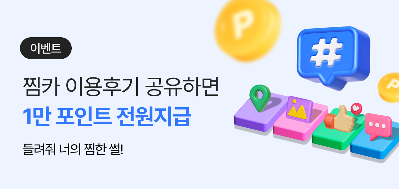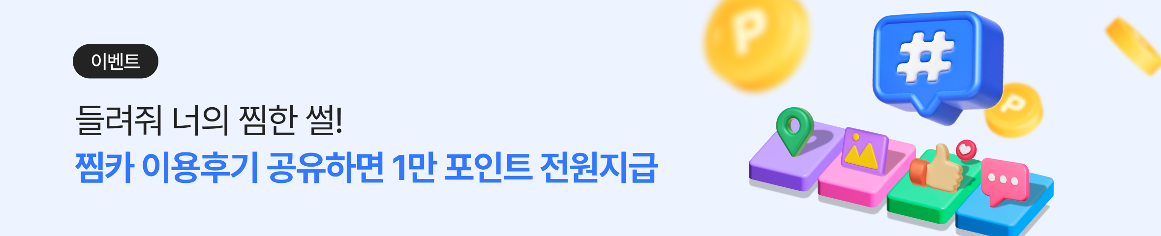 찜카는 제휴사에서 제공한 상품의 정보를 비교, 중개하는 플랫폼 입니다. (주)네이처모빌리티는 통신판매의 당사자가 아닌 통신판매 중개자로서 상품 검색 결과, 거래정보 및 이용과 환불에 대한 책임은 판매자에게 있습니다.